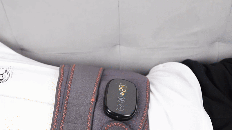 Es handelt sich um eine moderne Wärme- und Massagebandage mit Rotlichtfunktion. Sie kombiniert wohltuende Wärme, Vibration und eine ergonomische Passform, um gezielt Schmerzen zu lindern und Entspannung zu fördern.